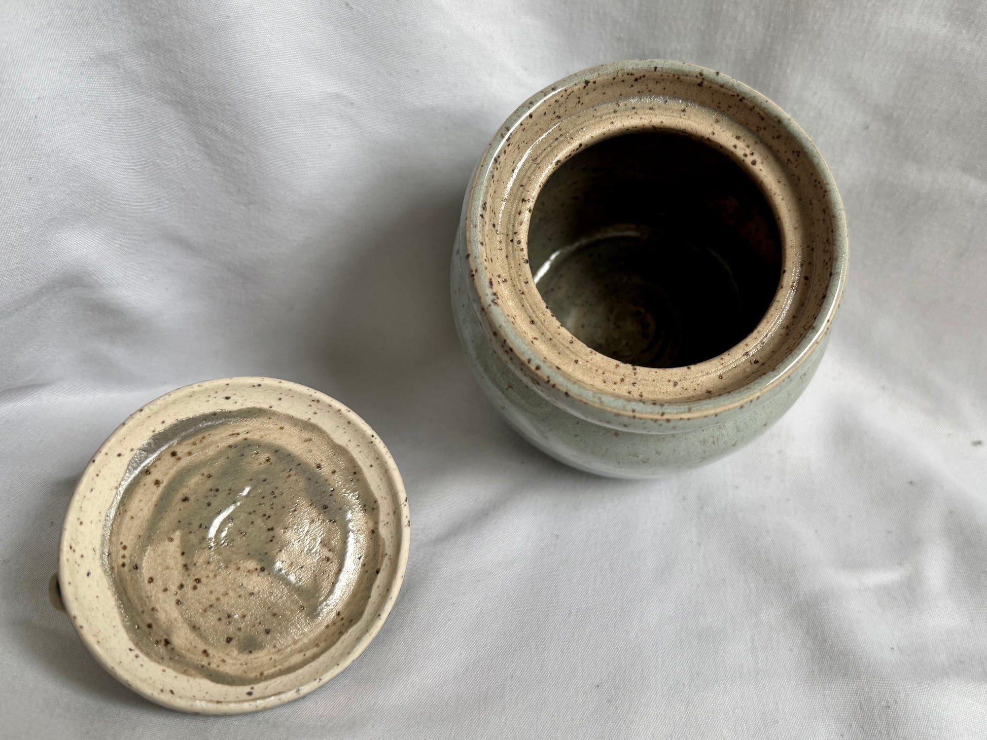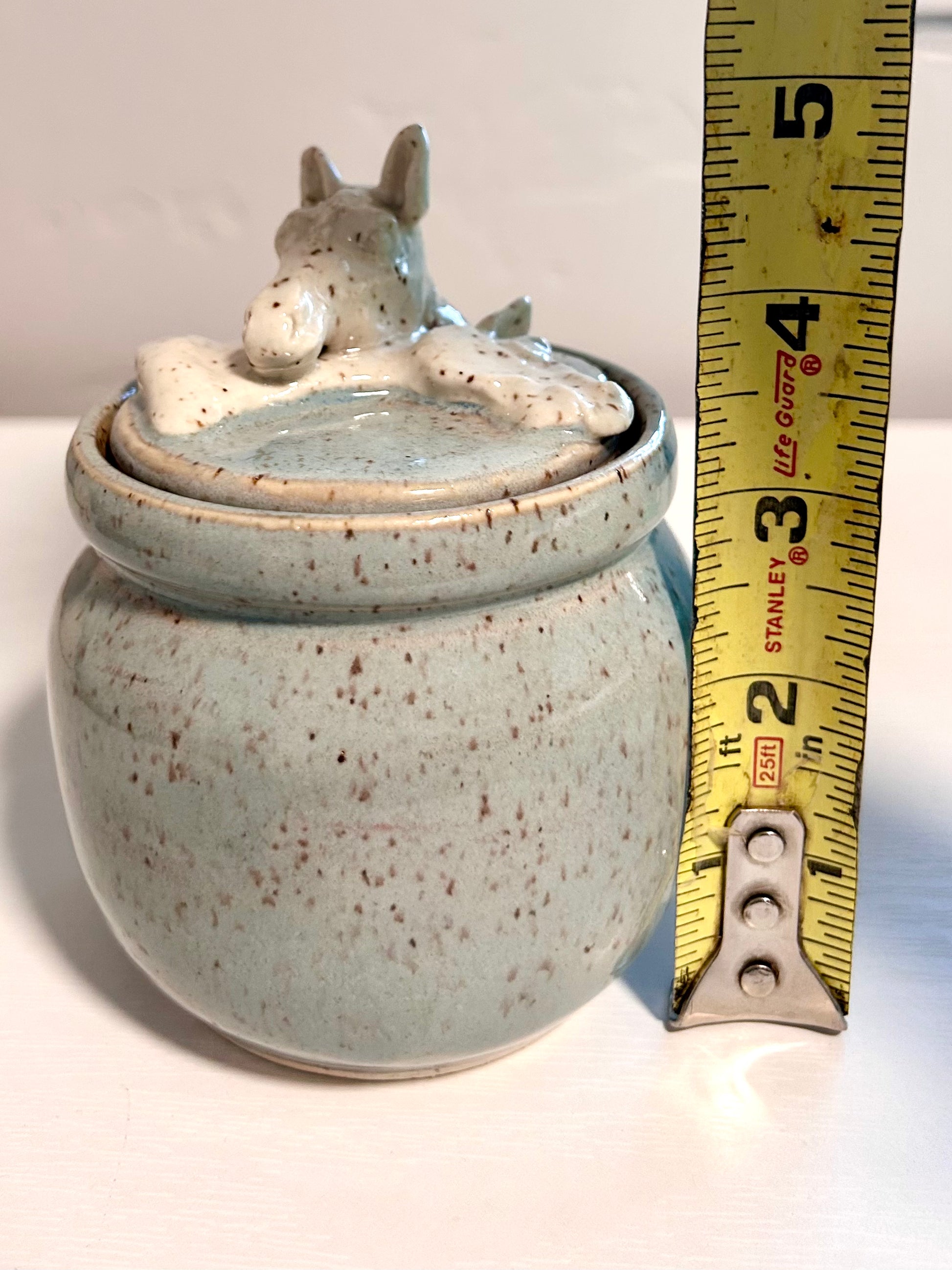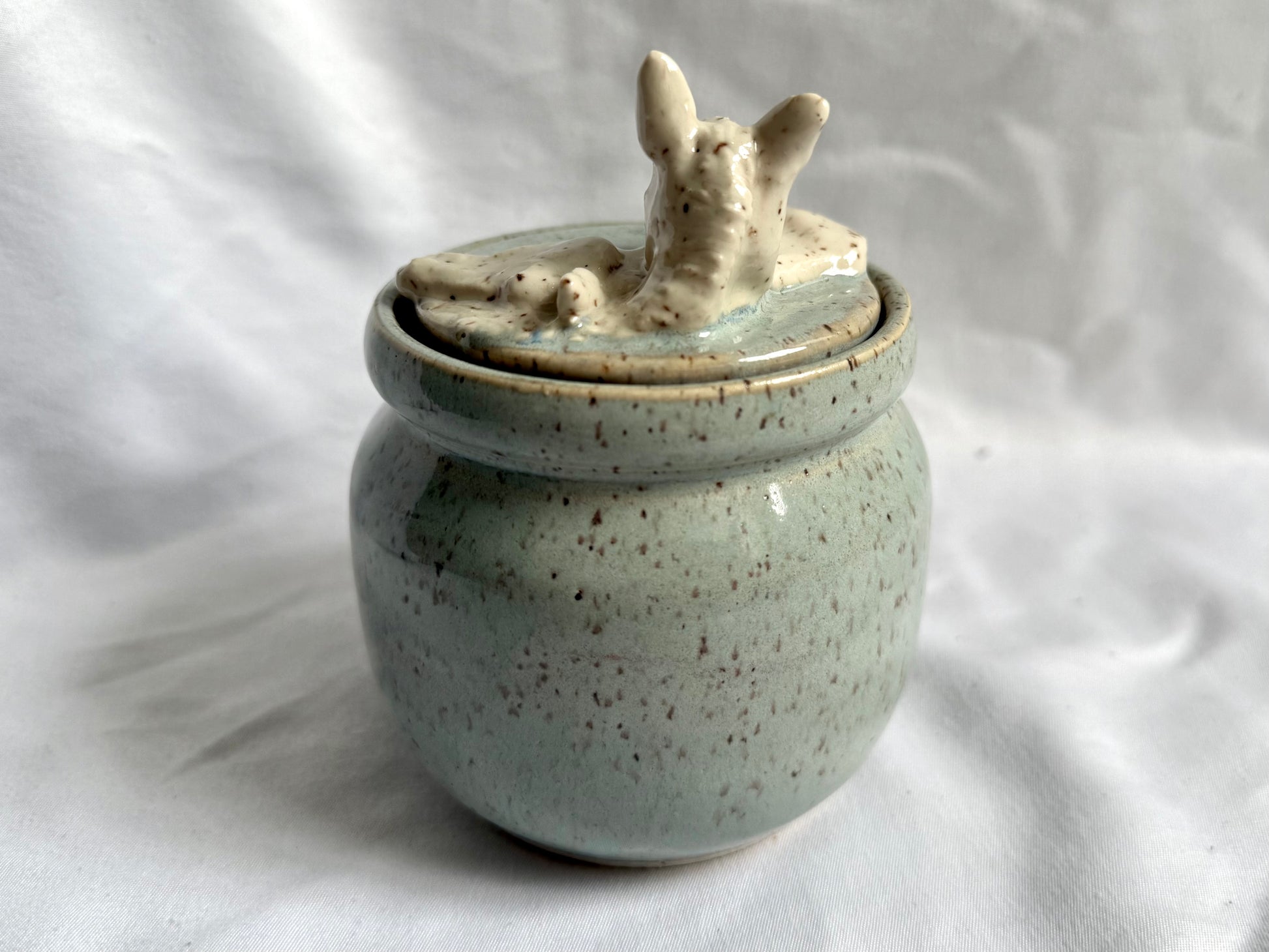 Hand sculpted horses on wheel thrown container