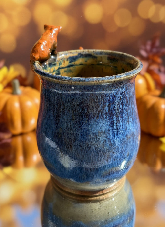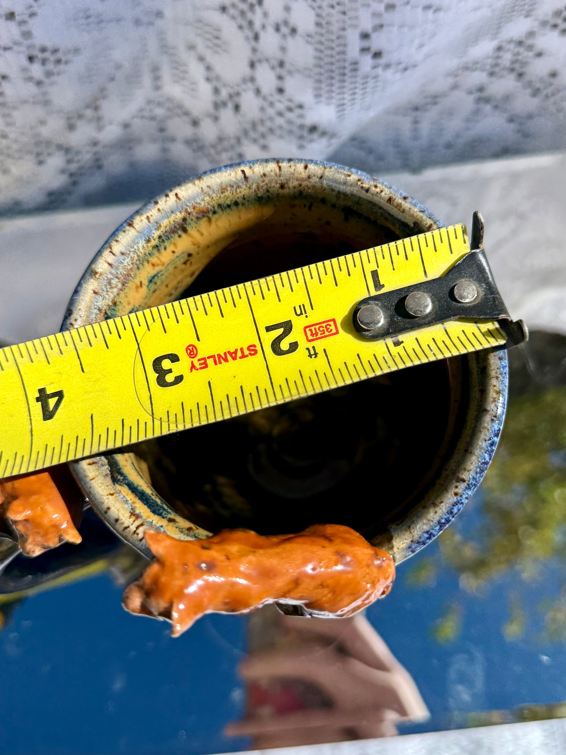 Hand sculpted red pandas on wheel thrown mug. Dimensions pictured 🤍